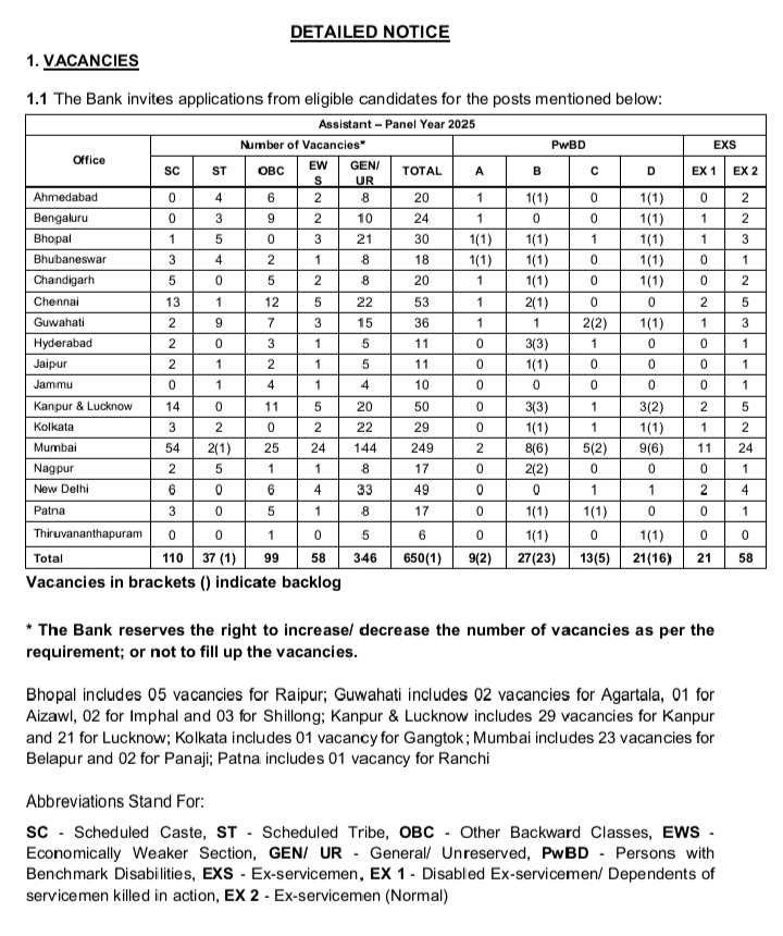 Total Posts – 650 vacancies